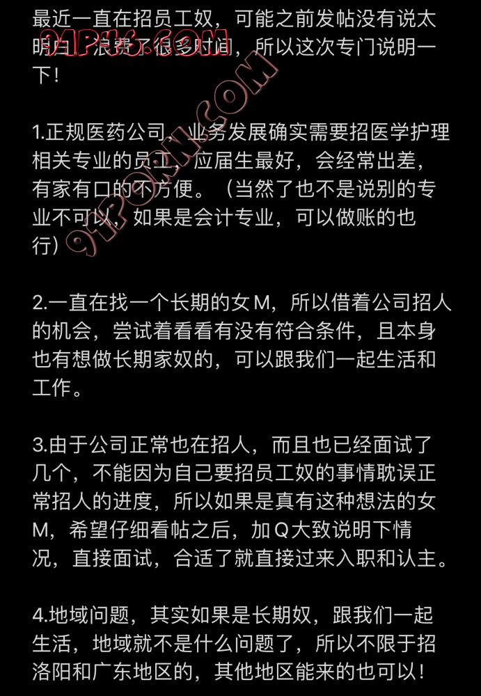 继续招M倾向女员工,最好最近能来入职 发帖